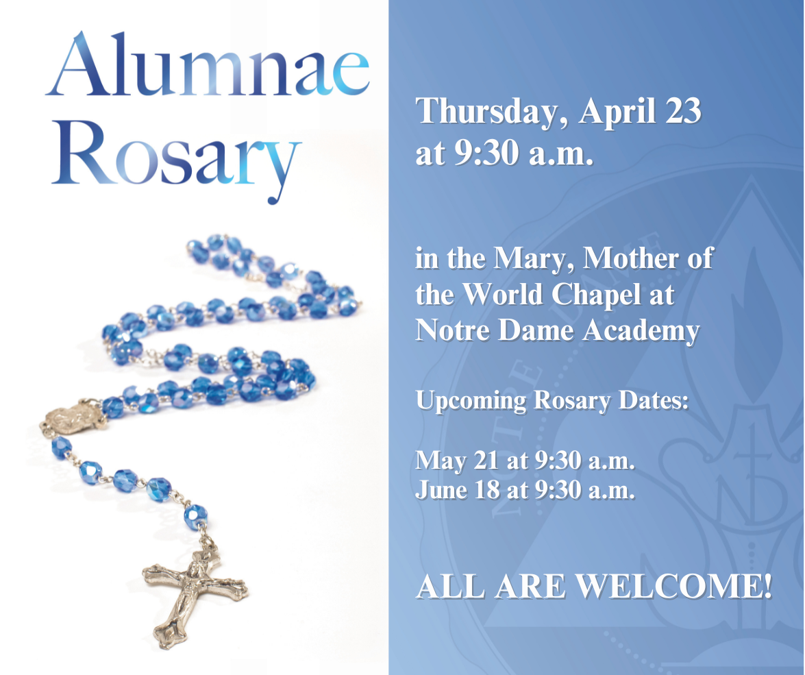 Please join us for our Monthly Alumnae Rosary, typically on the 3rd Thursday of each month. ALL ARE WELCOME!