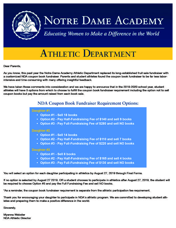 Categories Athletics, NDA News Post navigation NDA Uniform PolicyFinal Forms Athletic Department Fundraiser August 6, 2019 by Jane Kleier « NDA Uniform Policy Final Forms »