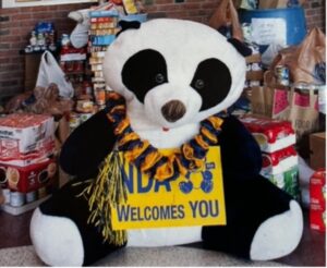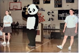 Today the panda can be found everywhere throughout the school as well as a participant at almost all events: welcoming students the first day of classes, club assemblies, pep rallies, class level competitions, club mascots and featured especially on all spiritwear. So be careful where you tread at NDA – the Panda is a powerful force that brings joy to all who raise a panda paw!