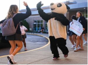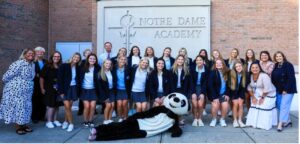 Cincinnati and Louisville are blessed with an abundance of educational opportunities for girls who want to experience high academic standards, a richness of spiritual traditions and well-rounded opportunities to play sports and participate in clubs and extra-curricular activities. But none of these educational opportunities – from St. Ursula Academy, north of Cincinnati to Mercy Academy, south of Louisville, can claim a mascot as unique as the Notre Dame Academy PANDA. What do the cougar, the wolf, the bulldog, the lion or the jaguar suggest about the unique spirit of the school, much less the Valkyries or Bailey and Saint Bernard or Tippy the Dog?